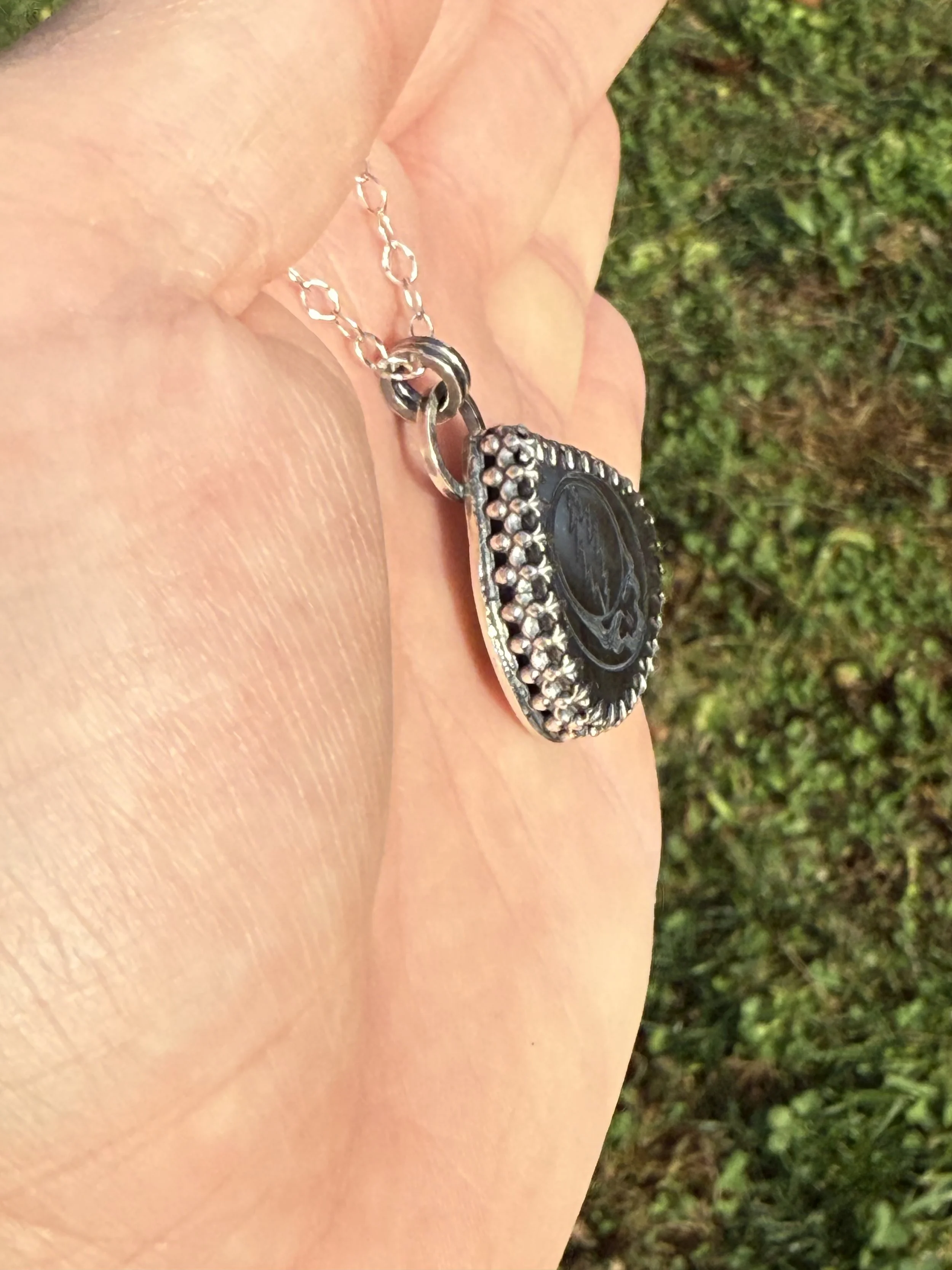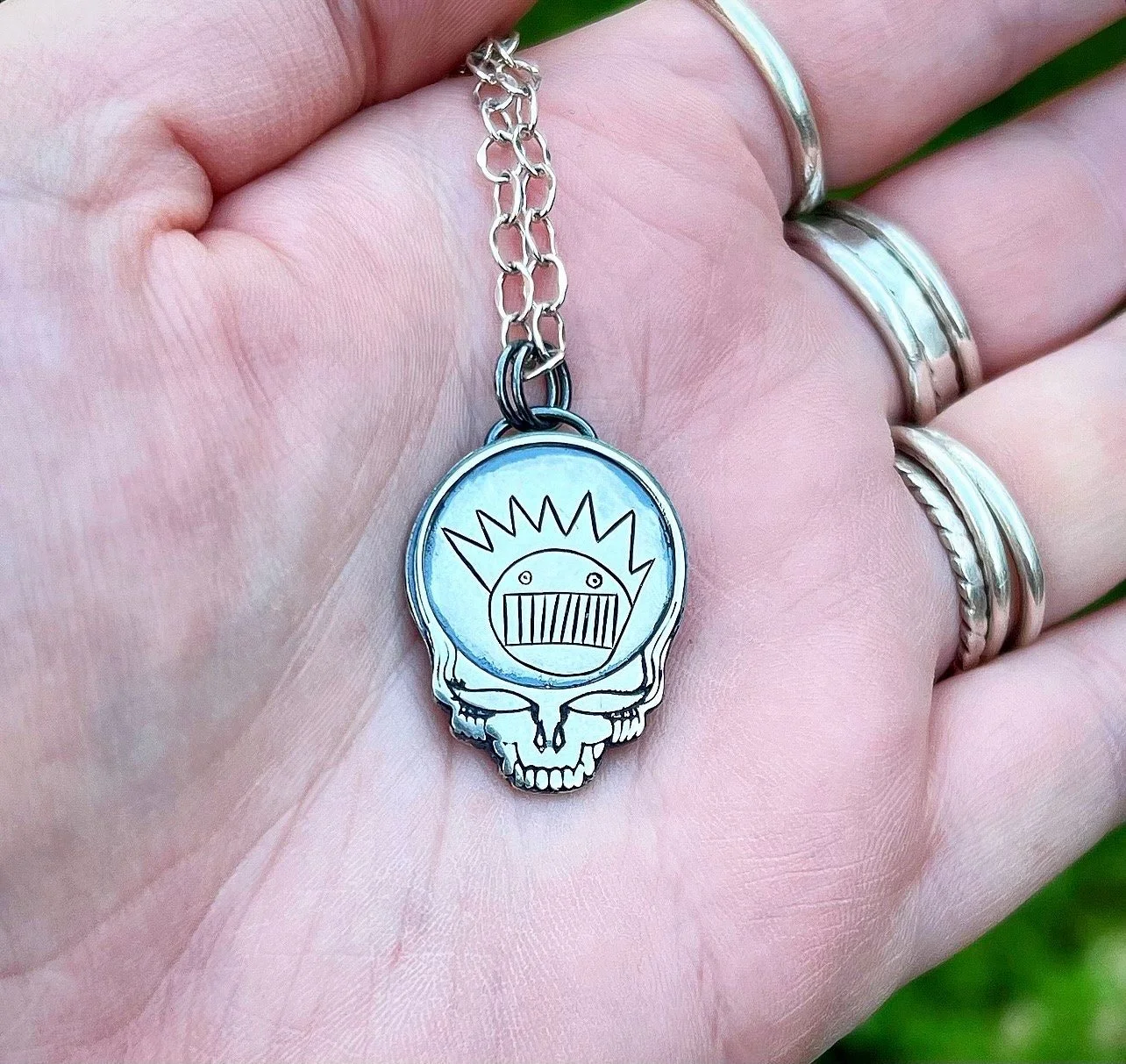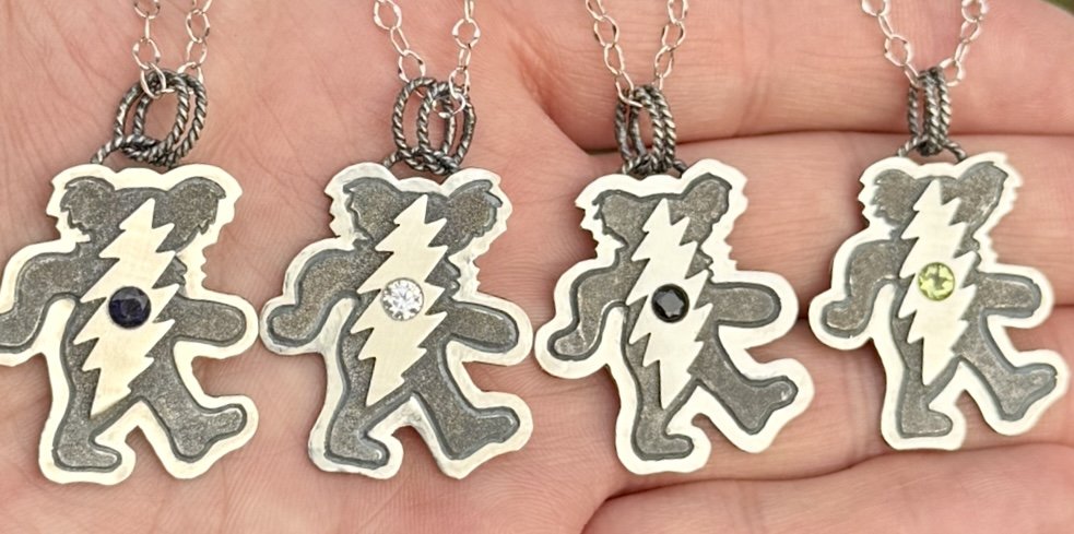 Store Categories: All Stainless Jewelry Jewelry Grateful Dead Pieces Boognish Pieces Billy Strings Pieces Store All | Stainless Jewelry | Jewelry | Grateful Dead Pieces | Boognish Pieces | Billy Strings Pieces | Store | Sterling and Glass Compass Pendants $98.00 Mae’s Sterling, peridot, and amethyst pendant $198.00 Solid Silver Skull and Bolt Pendant $108.00 Mother of Pearl and Silver Stealie $128.00 Sterling Silver Flower of Life Pendant $98.00 Jade and Sterling Silver Boognish Bolo $198.00 Roses Are Free Pendant $198.00 Sterling Silver and Baltic Amber Stealie Ring $148.00 Sterling Silver Bertha Pin $58.00 Pressed Glass Sterling Silver Stealie $198.00 Hand Fabricated Sterling Silver Hyryder Ring $138.00 Sterling Silver Hyryder Pendant $120.00 Sterling Silver Hyryder Pin or Pendant $120.00 Lapis Lazuli and Sterling Silver Bolt Pendant $178.00 Sterling Silver German Pressed Glass Pendant $98.00 Hand Fabricated Sterling Silver and Garnets Bertha Pendant $268.00 Boognish Golf Ball Marker $58.00 Sterling Silver and Antique Glass Rose Stealie $128.00 Hand Fabricated Sterling Silver Tire Ring Band $58.00 Sterling Silver Bertha and Roses Ring $108.00 Copper Peace Sunflower Pendant $68.00 Hand Fabricated Sterling Silver Bertha Pendant $198.00 Sterling and Millefiori Pendants $138.00 Sterling and Millefiori Stealie $198.00 Sterling Silver Bolt Bear $148.00 Sterling Silver Dancing Bear Pendant With Your Choice of Gemstone $168.00 Sterling Silver Spider With Garnet in Web $68.00 Hand Fabricated Silver Boognish Pin $15.00 Sterling Silver Rose and Bolts Cuff Bracelet $298.00 Sterling Silver VW Stealie $128.00 Sterling Silver Mushroom Pendant $68.00 Sterling Silver Labradorite Stealie Pendant $275.00 Rainbow Moonstone Bolt Ring $148.00 Rainbow Moonstone Bolt Pendant $128.00 Fire on the Mountian Terrapins $168.00 Sterling Silver Death Moth Pendant $108.00 Sterling Silver Boognish and Rainbow Moonstone Cuff $248.00 Sterling Silver Boognish and Flowers Cuff $298.00 Custom Thirteen Point Bolt Large Circle Pendant $118.00 Bolts $58.00 Sterling Silver Gemstone Bolt Earrings $325.00 Sterling Silver Steal Your Heart Pendant $148.00 Sold out Sterling Silver Wolf Pendant $168.00 Sterling Silver, Garnet, and Blue Spinel Grateful Dead Marching Bear Ring $98.00 Hand Fabricsted Sterling Silver Heart with Boognish $58.00 Stainless Steel Boognish Ring $18.00 Sterling Silver Boognish Stacking Ring $30.00 Labradorite Boognish Worry Stones $15.00 Cats Under The Stars Pendant $98.00 Sterling Silver Hand Engraved Ship Of Fools Pendant $98.00 Mae’s Sterling and Abalone Terrapin Pendant $88.00 Hand Engraved Sterling Silver Boognish Keychain $73.00 Hand Engraved Sterling Silver Boognish Earrings $98.00 Hand Engraved Sterling Silver Boognish Charm $68.00 Hand Engraved Sterling Silver Pirate Boognish Pendant $58.00 Thirteen Point Bolt Studs $30.00 Hand Made Copper Taco Bell Pendant/Keychain $20.00 Hand Made Silver Taco Bell Earrings $55.00 Hand Engraved/Fabricated Sterling Silver PA Family Pin $148.00 Mae’s Sterling and Gemstone Bolt Crow $158.00 Sterling Silver Kingman Turqouise Stealie $148.00 Magnified Boognish Pendant $68.00 Sterling Silver Terrapin Stealie $108.00 Cats Under The Stars Pendant $88.00 Sterling Silver Bolt Cuff Bracelet $140.00 Sterling Silver Magnolia and Bolt Earrings $98.00 Custom Sterling Silver Half Band Ring $148.00 Peridot and Ruby Ring $148.00 Hand Engraved Copper Boognish Keychain $68.00 Sterling Silver Gemstone Bolt Cuff Bracelet $325.00 Hand Engraved Sterling Silver Boognish Stealie Pendant $128.00 Cats Down Under Stars in Sterling and Lapis Lazuli $298.00 Fire on the Mountain Pendant $168.00 Sterling Silver Boognish Ring $85.00 Large Sterling Silver Hand Engraved Cats Pendant $118.00 Lapis Lazuli Cats Down Under the Stars Sterling Silver Cuff Bracelet $228.00 Sterling Silver and Black Spinel Death Moth $178.00 Sterling Puffy 3-D Love Light Pendant $98.00 Sterling Mirrored Leaf Earrings $48.00 Stainless Boognish Pendant in Gold, Silver, or Rose Gold $18.00 Sterling Silver Red Grenadine Pendant $68.00 Custom Faceted Stone Band Ring $58.00 Floral Sterling Silver Turquoise Ring $68.00 Sterling Silver Rainbow Moonstone Stealie $128.00 Sterling Silver Amethyst Stealie $128.00 Magnified Pendants $68.00 Shades of Blue Pendant $178.00 Sterling Silver Uncle Sam on a Thirteen Point Bolt $148.00 Custom Gemstone Sterling Silver Thirteen Point Bolt $88.00 Sterling Silver Stealie Earrings $108.00 Mae’s Boognish Cat Tags $25.00 Bolt and Goat Earrings $35.00 Sterling Sapphire and Garnet Lady Liberty Pendant $215.00 Cats Down Under Stars in Sterling and Jade $278.00 amber encircled with garnets in sterling silver $278.00 Thirteen Point Bolt Gemstone Circle Pendant $299.00 Sterling Silver Freedom of ‘76 Pendant $98.00 Custom Sterling Engraved Heart Ring $88.00 Mae’s Sterling Silver and Turquoise Rose Bolt Earrings $128.00 BMFS Magnified Goat Pendant $68.00 Mae’s Sterling Silver Mini Heart Bolt Pendant $68.00 Sterling Silver Butterfly Bolt $128.00 Sterling Silver Thirteen Point Bolt $68.00 Thirteen Point Bolt Gemstone Circle Pendant $299.00 Sterling Silver and Engraved Black Onyx Pendants $68.00 Hand Made Silver Taco Bell Pendant/Keychain $30.00 Sterling Art Deco Earrings $35.00 Sterling Silver Floral Asymmetrical Teardrop Earrings $78.00 Mae’s Sterling Silver Unicorn Stud Earrings $38.00 Sterling Silver Magnolia Earrings $65.00 Hand Fabricated Sterling Silver Boognish Studs $35.00 Mae’s Crying Heart Ring $40.00 Sterling Silver, Garnet, and Blue Spinel Grateful Dead Terrapin Ring $98.00 Mae’s Sterling Silver and Black Spinel Death Moth $128.00 Mae’s Sterling and Rainbow Moonstone Moonphase Necklace $98.00 Mae’s Lucky Horseshoe "Good Luck" Turquoise Pendant $78.00 New Fashion Minimalist Stainless Rings $18.00 Sterling and Gemstone Cats Earrings $128.00 Sterling Silver and Gemstone Cats Earrings $128.00 Sterling Silver, Garnet, and Sapphire Jerry $210.00 Rainbow Moonstone Striped Band Ring $58