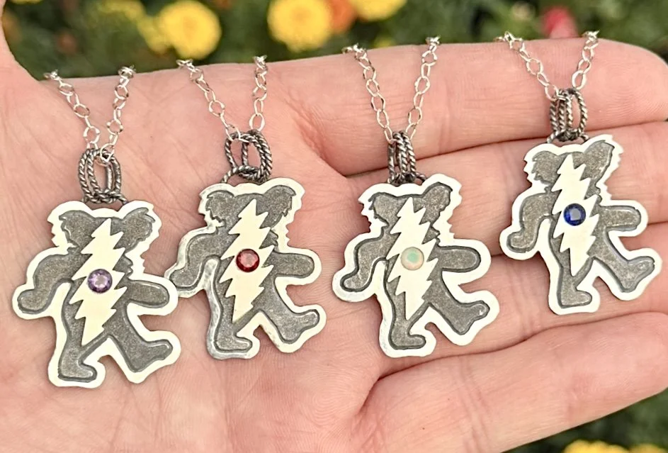 Categories: All Stainless Jewelry Jewelry Grateful Dead Pieces Boognish Pieces Billy Strings Pieces Store All | Stainless Jewelry | Jewelry | Grateful Dead Pieces | Boognish Pieces | Billy Strings Pieces | Store | Sterling Silver and Baltic Amber Stealie Ring $148.00 Sterling Silver Bertha Pin $58.00 Pressed Glass Sterling Silver Stealie $198.00 Hand Fabricated Sterling Silver Hyryder Ring $138.00 Sterling Silver Hyryder Pendant $120.00 Sterling Silver Hyryder Pin or Pendant $120.00 Lapis Lazuli and Sterling Silver Bolt Pendant $178.00 Sterling Silver German Pressed Glass Pendant $98.00 Hand Fabricated Sterling Silver and Garnets Bertha Pendant $268.00 Boognish Golf Ball Marker $58.00 Sterling Silver and Antique Glass Rose Stealie $128.00 Hand Fabricated Sterling Silver Tire Ring Band $58.00 Sterling Silver Bertha and Roses Ring $108.00 Copper Peace Sunflower Pendant $68.00 Hand Fabricated Sterling Silver Bertha Pendant $198.00 Sterling and Millefiori Pendants $138.00 Sterling and Millefiori Stealie $198.00 Sterling Silver Bolt Bear $148.00 Sterling Silver Dancing Bear Pendant With Your Choice of Gemstone $168.00 Sterling Silver Spider With Garnet in Web $68.00 Hand Fabricated Silver Boognish Pin $15.00 Sterling Silver Rose and Bolts Cuff Bracelet $298.00 Sterling Silver VW Stealie $128.00 Sterling Silver Mushroom Pendant $48.00 Sterling Silver Labradorite Stealie Pendant $275.00 Rainbow Moonstone Bolt Ring $148.00 Rainbow Moonstone Bolt Pendant $128.00 Fire on the Mountian Terrapins $168.00 Sterling Silver Death Moth Pendant $108.00 Sterling Silver Boognish and Rainbow Moonstone Cuff $248.00 Sterling Silver Boognish and Flowers Cuff $298.00 Custom Thirteen Point Bolt Large Circle Pendant $118.00 Bolts $58.00 Sterling Silver Gemstone Bolt Earrings $325.00 Sterling Silver Steal Your Heart Pendant $148.00 Sold out Sterling Silver Wolf Pendant $168.00 Sterling Silver, Garnet, and Blue Spinel Grateful Dead Marching Bear Ring $98.00 Hand Fabricsted Sterling Silver Heart with Boognish $58.00 Stainless Steel Boognish Ring $18.00 Sterling Silver Boognish Stacking Ring $30.00 Labradorite Boognish Worry Stones $15.00 Cats Under The Stars Pendant $98.00 Sterling Silver Hand Engraved Ship Of Fools Pendant $98.00 Mae’s Sterling and Abalone Terrapin Pendant $88.00 Hand Engraved Sterling Silver Boognish Keychain $73.00 Hand Engraved Sterling Silver Boognish Earrings $98.00 Hand Engraved Sterling Silver Boognish Charm $68.00 Hand Engraved Sterling Silver Pirate Boognish Pendant $58.00 Thirteen Point Bolt Studs Sale Price: $24.00 Original Price: $30.00 Sale Hand Made Copper Taco Bell Pendant/Keychain $20.00 Hand Made Silver Taco Bell Earrings $55.00 Hand Engraved/Fabricated Sterling Silver PA Family Pin $148.00 Mae’s Sterling and Gemstone Bolt Crow $158.00 Sterling Silver Kingman Turqouise Stealie $148.00 Magnified Boognish Pendant $68.00 Sterling Silver Terrapin Stealie $108.00 Cats Under The Stars Pendant $88.00 Sterling Silver Bolt Cuff Bracelet $140.00 Sterling Silver Magnolia and Bolt Earrings $98.00 Custom Sterling Silver Half Band Ring $148.00 Peridot and Ruby Ring $148.00 Hand Engraved Copper Boognish Keychain $68.00 Sterling Silver Gemstone Bolt Cuff Bracelet $325.00 Hand Engraved Sterling Silver Boognish Stealie Pendant $128.00 Cats Down Under Stars in Sterling and Lapis Lazuli $298.00 Fire on the Mountain Pendant $168.00 Sterling Silver Boognish Ring $85.00 Large Sterling Silver Hand Engraved Cats Pendant $118.00 Lapis Lazuli Cats Down Under the Stars Sterling Silver Cuff Bracelet $228.00 Sterling Silver and Black Spinel Death Moth $178.00 Sterling Puffy 3-D Love Light Pendant $98.00 Sterling Mirrored Leaf Earrings $48.00 Stainless Boognish Pendant in Gold, Silver, or Rose Gold $18.00 Sterling Silver Red Grenadine Pendant $68.00 Custom Faceted Stone Band Ring $58.00 Floral Sterling Silver Turquoise Ring $68.00 Sterling Silver Rainbow Moonstone Stealie $128.00 Sterling Silver Amethyst Stealie $128.00 Magnified Pendants $68.00 Shades of Blue Pendant $178.00 Sterling Silver Uncle Sam on a Thirteen Point Bolt $148.00 Custom Gemstone Sterling Silver Thirteen Point Bolt $88.00 Sterling Silver Stealie Earrings $108.00 Mae’s Boognish Cat Tags $25.00 Bolt and Goat Earrings $35.00 Sterling Sapphire and Garnet Lady Liberty Pendant $215.00 Cats Down Under Stars in Sterling and Jade $278.00 amber encircled with garnets in sterling silver Sale Price: $222.00 Original Price: $278.00 Sale Thirteen Point Bolt Gemstone Circle Pendant $299.00 Sterling Silver Freedom of ‘76 Pendant $98.00 Custom Sterling Engraved Heart Ring $88.00 Mae’s Sterling Silver and Turquoise Rose Bolt Earrings $128.00 BMFS Magnified Goat Pendant $68.00 Mae’s Sterling Silver Mini Heart Bolt Pendant $68.00 Sterling Silver Butterfly Bolt $128.00 Sterling Silver Thirteen Point Bolt $68.00 Thirteen Point Bolt Gemstone Circle Pendant $299.00 Sterling Silver and Engraved Black Onyx Pendants $68.00 Hand Made Silver Taco Bell Pendant/Keychain $30.00 Sterling Art Deco Earrings $35.00 Sterling Silver Floral Asymmetrical Teardrop Earrings Sale Price: $63.00 Original Price: $78.00 Sale Mae’s Sterling Silver Unicorn Stud Earrings $38.00 Sterling Silver Magnolia Earrings $65.00 Hand Fabricated Sterling Silver Boognish Studs $35.00 Mae’s Crying Heart Ring $40.00 Sterling Silver, Garnet, and Blue Spinel Grateful Dead Terrapin Ring $98.00 Mae’s Sterling Silver and Black Spinel Death Moth $128.00 Mae’s Sterling and Rainbow Moonstone Moonphase Necklace $98.00 Mae’s Lucky Horseshoe "Good Luck" Turquoise Pendant $78.00 New Fashion Minimalist Stainless Rings $18.00 Sterling and Gemstone Cats Earrings $128.00 Sterling Silver and Gemstone Cats Earrings $128.00 Sterling Silver, Garnet, and Sapphire Jerry $210.00 Rainbow Moonstone Striped Band Ring $58.00 Thirteen Point Bolt Pendant $78.00 Sterling Silver Sunflower Bolt Box $198.00 Sterling Silver Lovelight Pendant $98.00 Red Jasper and Sterling Love Light Pendant Sale Price: $142.00 Original 