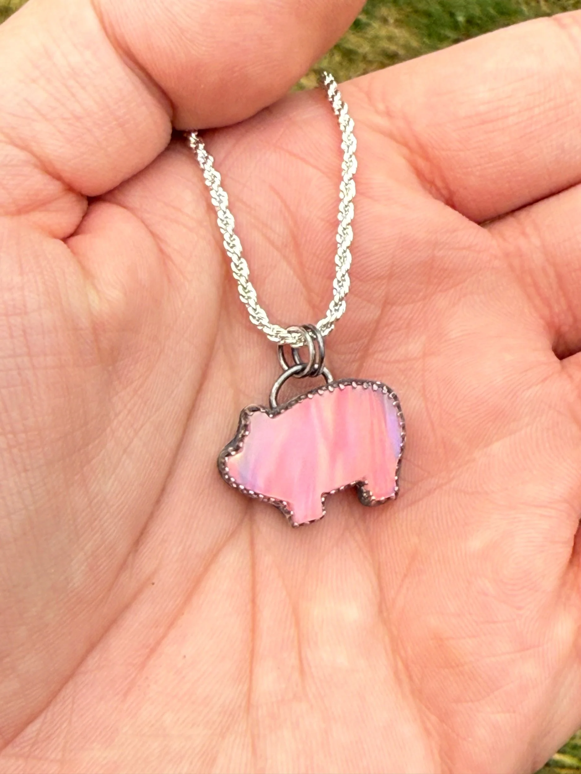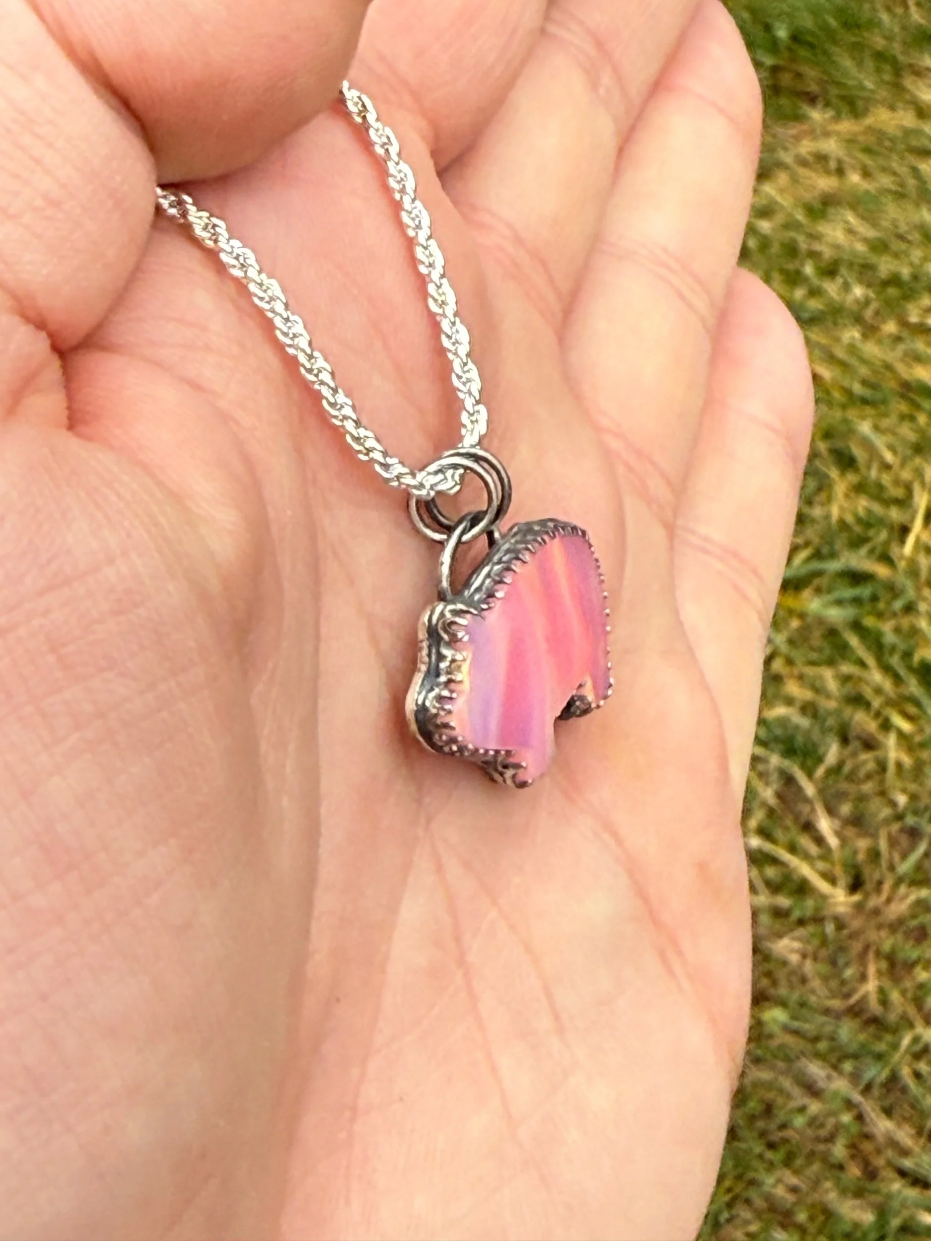 This hand fabricated sterling silver pendant features an opal pig. Please message me to discuss what you’d like custom hand engraved on the back. This doesn’t come with a chain.