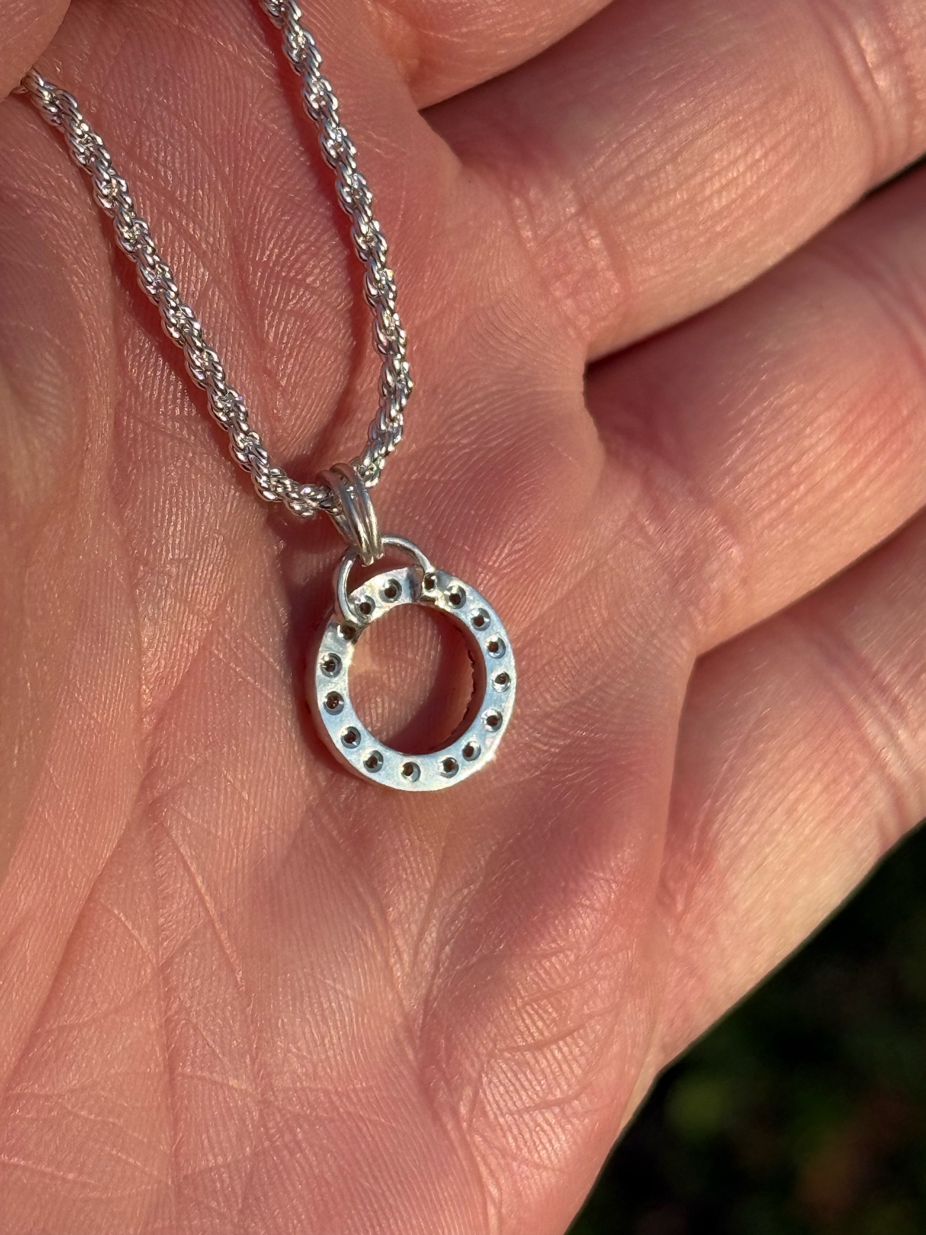 Looking for something new and sparkly in your life? Look no further! I hand fabricated this pendant and then set each stone by hand under my microscope. This piece does not come with a chain.